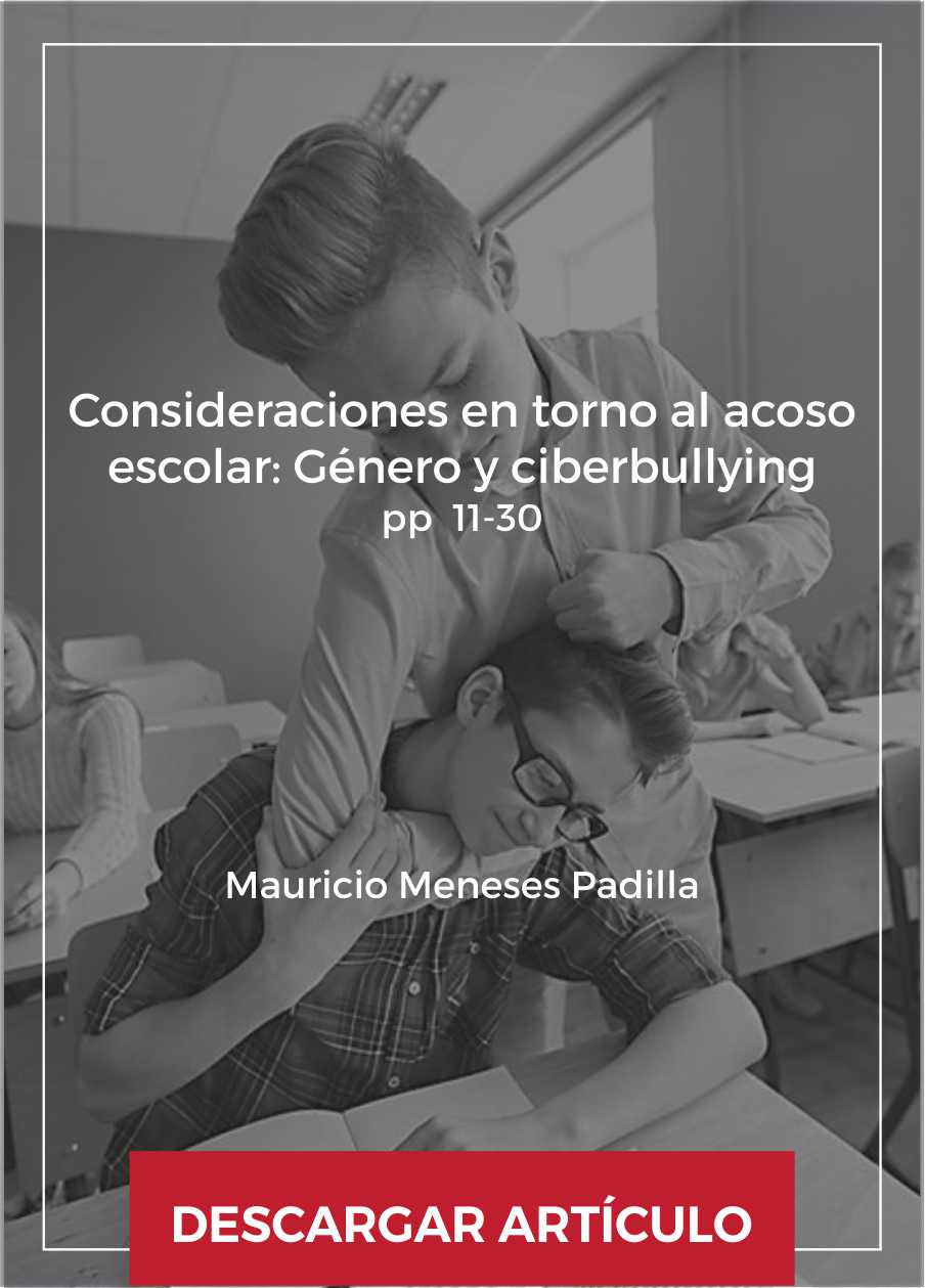 El primero de los artículos, escrito por Mauricio Meneses Padilla, egresado del doctorado en Desarrollo Humano de la UNAG, profundiza en dos áreas del proceso de acoso escolar y aborda su posible relación: el género y el uso de la tecnología. En su texto, Meneses reconoce que las formas de agresión se han ampliado y hace notar que los procesos de violencia escolar van de la mano del uso de la tecnología. Así, el autor ofrece distintas conclusiones en torno al ciberbullying y lo que corresponde contemplar en las instituciones educativas al respecto.