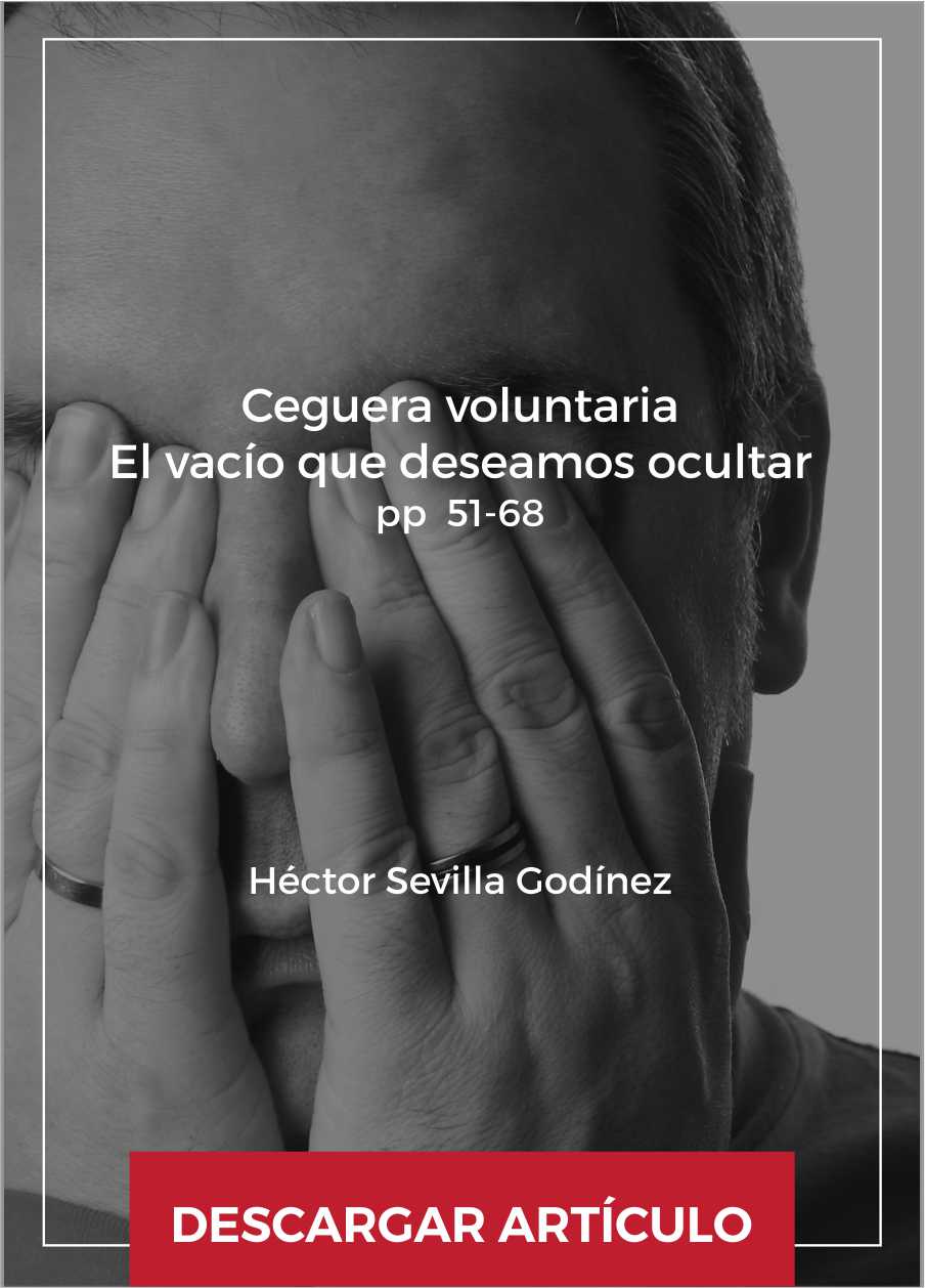 En el tercer artículo, titulado Ceguera voluntaria, Héctor Sevilla se enfoca en desentrañar el vacío que deseamos ocultar. Para ello, ofrece una significación útil del vacío, considerándolo una oportunidad para reconstruirse a partir de la crisis. El trabajo de Sevilla permite plantear de manera crítica la lucha contra la ignorancia promovida estratégicamente en las sociedades de consumo. En ese sentido, la ceguera voluntaria, entendida como la elección de ocultar, negar o nulificar el propio vacío, se vuelve un obstáculo central.
